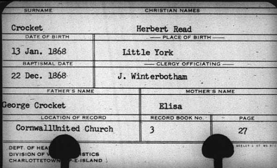 | Name | Herbert Read Crockett was also known as Herbert Reid Crockett.2 |