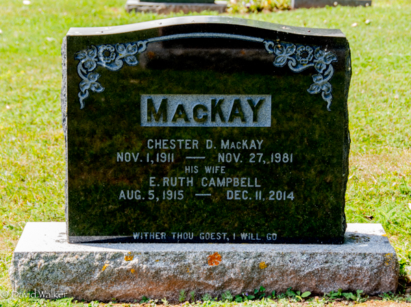 - [S7361] Tombstone, Geddie Memorial Cemetery. Chester D. MacKay, tombstone inscription; read by David A. Walker, 23 August 2012.
