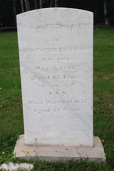 Inscription: In Memory / of / Christopher Richardson / Who Died / May 6, 1853 / Aged 85 Years. / Also his wife / Ann / Died March 14, 1852, /