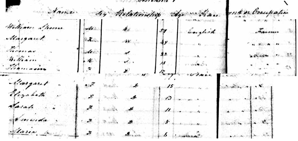 | Witness | He was enumerated on the census in 1851 in the household of William Spence, Esq., in Botsford Parish, Westmorland County, New BrunswickG. included in the household with William (age 58) were his wife Margaret Trenholm (age 49), and children, Thomas (age 22), William (age 18), Thomasina (age 17), Margaret (age 15), Elizabeth (age 13), Sarah (age 11), Amanda (age 8) and Maria (age 6). William was a farmer.3 1851 Canada Census, Botsford Parish, Westmorland County, New Brunswick. Household of William Spence, his wife Margaret Trenholm, and children, Thomas, William, Thomasina, Margaret, Elizabeth, Sarah, Amanda and Maria. |