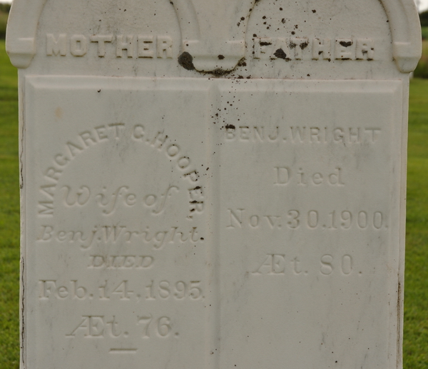 - [S3651] Cemetery marker - Benjamin Wright. Benjamin Wright & Margaret Hooper, Inscription; David A. Walker, 23 July 2009.