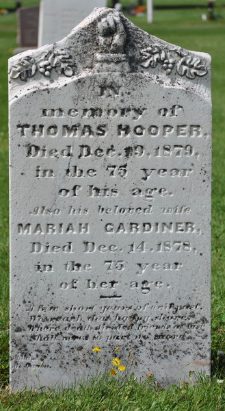 - [S3736] Cemetery Marker - Thomas Hooper (1804-1879). Thomas Hooper (1804-1879), Marker Inscription; David A. Walker, 20 August 2009.