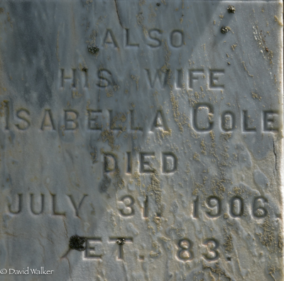 - [S3154] Cemetery Marker Alexander Hooper & Isabelle Cole. Alexander Hooper & Isabelle Cole, Marker Inscription; David A. Walker.