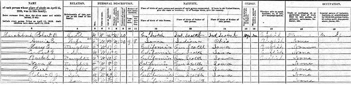 | grandson | Cleveland Wallace McNeill was enumerated on the census on 6 May 1910 in the household of Wallace Mason, as a grandson, in Gorham, Coos County, New Hampshire, USAG.4 |