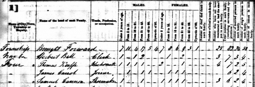 - [S2200] census return, Library & Archives Canada; 395 Wellington St., Ottawa,, Ontario, Canada, Library & Archives Canada, Family 123.