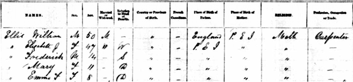 | Witness | He was enumerated on the census in 1881 in the household of Thomas Robins in Lot 26, Prince County, Prince Edward Island, CanadaG. Thomas (age 44) was listed as a farmer and Baptist. Within the household were his wife Fanney (age 44), sons Edwin P. (age 8) and Everett (Evert) E. (age 5). Also in the household was Cecilia Warren (age 16), probably a domestic.1 1881 Canada Census, Lot 26, Prince County, Prince Edward Island. Household of Thomas Robins, his wife Frances Boyle, children Edwin & Evert. |