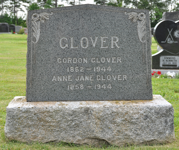 | Burial | He was buried in the Peoples Cemetery, Kensington, Prince County, Prince Edward Island, Canada, 46.44762, -63.62880G. this tombstone is to the right of their mother Catherine and other sister Joanna. Inscription: GLOVER / Gordon Glover / 1862 - 1944 / Anne Jane Glover / 1858 - 1944.3 Tombstone, Gordon Glover (1862-1944)and his sister Jane Glover (1860-1944). The Peoples Cemetery, Kensington, Prince County, Prince Edward Island, Canada. |