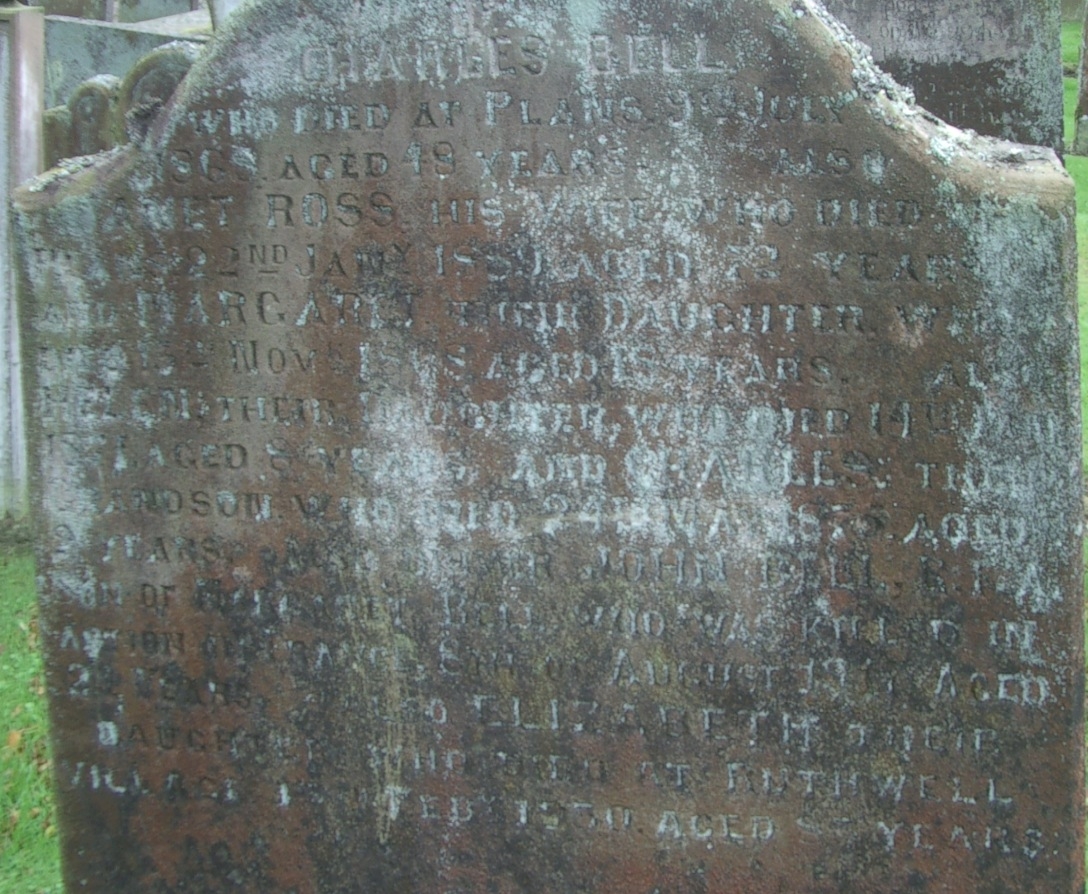 - [S4689] Cemetery Marker: Charles Bell & Janet Ross. Charles Bell & Janet Ross, Cemetery Marker; Christeen Charlton.