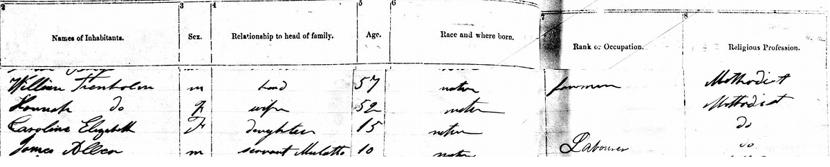 | Witness | She was enumerated on the census in 1871 in the household of Robert Trenholm in Botsford Parish, Westmorland County, New BrunswickG. included in the household with Robert (age 46) were his second wife Phebe (age 40), children (from Robert's first marriage) Lucinda (age 24), Albert (age 23), Melissa (age 20), Mary (age 18), Harmon/Herman (age 17), Hannah (age 14) and Snowball (age 11). Robert, Albert & Harmon were farmers. The family religion was Wesleyan Methodist.2 1871 Canada Census, Botsford, Westmorland County, New Brunswick. Household of Robert Trenholm, his second wife Phebe, children Lucinda, Albert, Melissa, Mary, Harmon/Herman, Hannah and Snowball. |