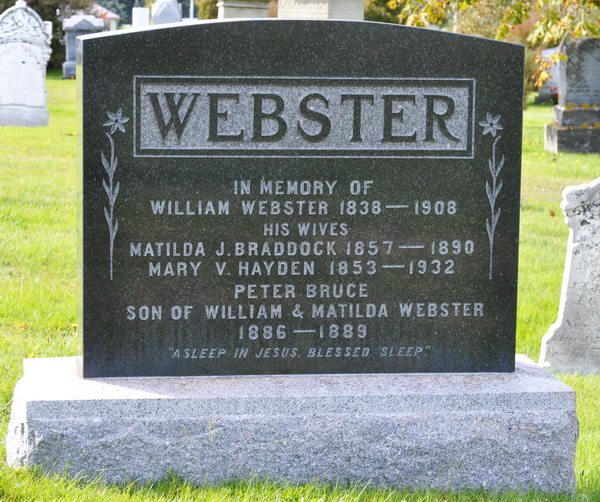 | Death | She died in 1955.3 Tombstone, Robert Bruce Currie (1871-1945), his wife Frances Webster (1876-1955). United & Nazarene Cemetery, Elmsdale, Prince Coiunty, Prince Edward Island, Canada. |