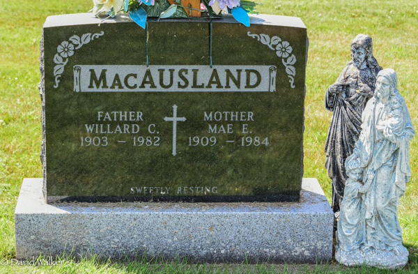 - [S12547] United Church Cemetery, Bideford, Prince County, Prince Edward Island, Canada. Willard C. MacAusland & Mae E. Ford, tombstone inscription & photograph; read by David A. Walker.