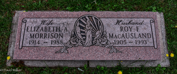 Inscription: Wife / Elizabeth A. / Morrison / 1914 - 1988 | Husband / Roy F. / MacAusland / 1905 - 1993