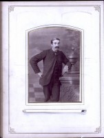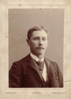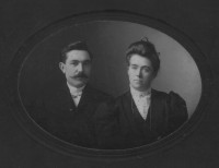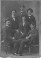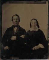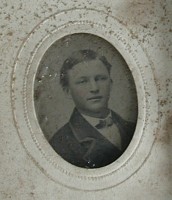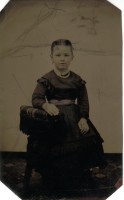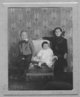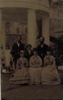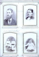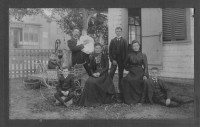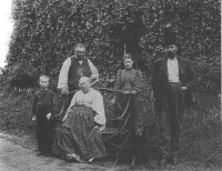 Family photo of Benjamin Sunderlin/Sunderland Palmer, his wife Sarah Ann McAlpine, their son Edgar Blanchard Palmer (wearing the tophat), his future wife Annie Lacey and a young boy. This boy to the left of the group is not identified. Please let me know if you put a name to the face. Central Hampstead, New Brunswick.